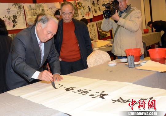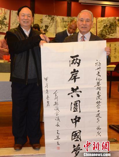 中新網福州12月27日電 (記者 劉可耕)“回到這邊就像回到家一樣。新年即將到來之際,希望兩岸在文化、經濟等方面進一步交流,促進兩岸永久和平,甚至創造兩岸的經濟發展,讓兩岸同胞生活更加美滿。”27日,參加福州文化藝術交流協會成立十周年慶典暨兩岸書畫名家迎新年書畫筆會的金門縣議會議長王再生表示。