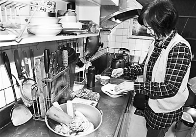 臺(tái)北:臺(tái)北市民鐘克臣的太太在家中清洗食材,準(zhǔn)備餐食(2月14日攝)。吳景騰攝(新華社發(fā))