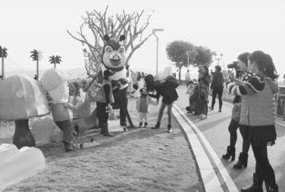 25日,記者在福州馬尾區江濱東大道沿線看到,以“燈耀兩馬·夢圓兩岸”為主題的第十三屆“兩馬同春鬧元宵”花燈展已具雛形,不少展區已完成布展,造型各異的花燈把沿途景致裝點得喜慶熱鬧、絢麗多姿,江濱東大道及東江濱公園里隨處可見正忙碌布置花燈的工作人員和拿著手機拍照留念的游客(如圖)。
