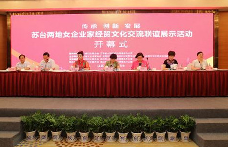 中國臺灣網8月29日蘇州訊 8月27日,“傳承 創新 發展——蘇臺兩地女企業家經貿文化交流聯誼展示活動”在江蘇省昆山市隆重開幕。本次活動由江蘇省婦聯、省臺辦共同指導,江蘇省婦女企業家協會、臺灣中華海峽兩岸婦女經貿文化交流協會、臺灣中華文妍企業交流協會聯合主辦,來自臺灣的40名女企業家與我省百余名女企業家參加活動。