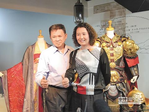 臺北霞海城隍廟主辦“穿越大稻埕的刺客地圖”電影服裝特展,《刺客聶隱娘》服裝設(shè)計師黃文英(右)、旗袍師傅陳忠信與作品合照。來源:臺灣《中國時報》