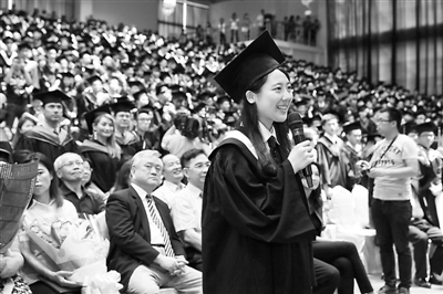 圖為在臺灣淡江大學就讀的一位陸生在畢業典禮上發言。新華社記者 才揚攝