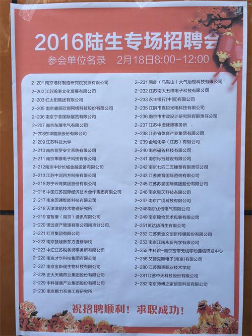 蘇寧云商、紅豆集團、紅太陽、省體育產(chǎn)業(yè)集團、永豐銀行、南京市市政設計研究院、省教育廳國際交流中心、江蘇海事職業(yè)技術(shù)學院、正大天晴藥業(yè)集團、英達集團等52家知名國營、民營大型企業(yè)及事業(yè)單位提供了百余名就業(yè)崗位,涉及中文、金融、建筑、設計、法學、環(huán)保、文創(chuàng)、IT等數(shù)十個行業(yè)。到場學生手持精心準備好的自薦書和簡歷自信地來回企業(yè)之間,積極與招聘人員溝通、交流,主動了解用人單位情況,在面對與日俱增的就業(yè)壓力下,不少同學表現(xiàn)的更加穩(wěn)重,心態(tài)也更加積極。在雙方共同努力下,近半數(shù)的陸生和企業(yè)達成了初步的用人意向。