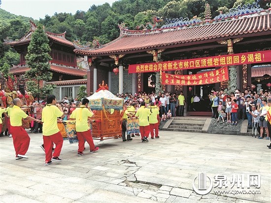 “200多年過(guò)去,這是我們第一次帶著祖師金身回鄉(xiāng)謁祖。”頂福巖主任委員吳水源介紹,清乾隆十九年(1745年)湖頭感化里福壽村村民李序顏和李序原兄弟二人,因家境貧寒,相伴欲往臺(tái)灣島創(chuàng)業(yè)謀生,心想鄉(xiāng)里供奉的顯應(yīng)祖師十分靈驗(yàn),便將祖師神像分靈到臺(tái)灣臺(tái)北立爐奉祀,后陸續(xù)分爐到臺(tái)灣各地,頂福巖便是其中一脈。湖頭泰山巖管委會(huì)主任陳金星表示,今年以來(lái)先后已有8個(gè)臺(tái)灣宗教團(tuán)體前往泰山巖進(jìn)行民俗文化交流,以此次規(guī)模為最,成員皆自發(fā)組織自費(fèi)前來(lái)。在他看來(lái),宗教文化交流已不僅是一種習(xí)俗,更是兩岸民眾增進(jìn)了解、深化感情的精神紐帶,可謂“同山同巖同一神,思源思鄉(xiāng)思老祖。”