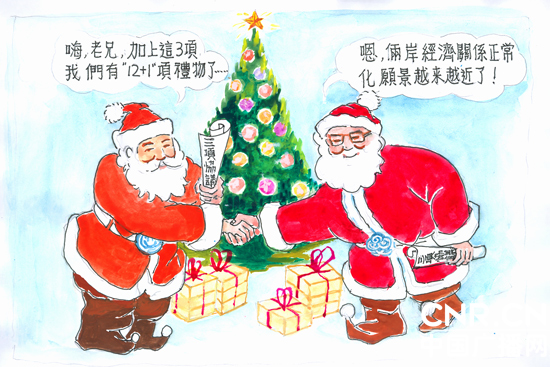 自去年6月以來兩會復談以來,兩會共進行了四次領導人會談,共簽署了十二項協議,達成一項共識。隨著兩岸農、漁等三項協議的簽署,兩會協商成果也越來越多地向社會各界和基層民眾傾斜,為越來越多的兩岸同胞所分享。(策劃:安亞強 張鵬 黃永波;繪畫:安坤)