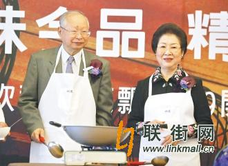 “欣葉臺菜”位于新光三越A9館的新餐廳昨天開幕,由新光三越董事長吳東興(左)與欣葉臺菜董事長李秀英親自下廚爆香,捎出百貨業業績看旺的好消息。