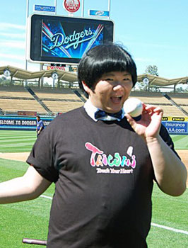 即將在道奇臺灣日獻唱的“小胖”林育群,20日走訪道奇主場,了解當天演唱場地。 圖片來源:“中央社”