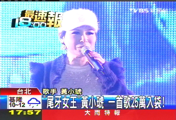中國臺灣網1月9日消息 據臺灣TVBS電視臺報道,春節臨近,臺灣企業的尾牙活動一場接一場,藝人們則跟著大撈一筆,誰是企業最愛的藝人?“滅絕師太”黃小琥以超過30場封后,堪稱“尾牙女王”。其中,參加日盛金控一場尾牙活動,她只唱了4首歌就賺了100萬(新臺幣,下同),平均一首歌入賬25萬,共唱了40分鐘,1分鐘凈賺25000元。