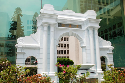 新竹清華大學(xué)行政大樓后方有個(gè)拱門造型的“清華園”,這是以北京清華二校門清華園1/3比例縮小制作的,展現(xiàn)兩岸清華的血脈淵源。 圖片來源:“中央社”