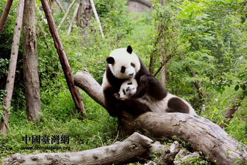 兩只活潑的幼年熊貓?jiān)谟H密嬉戲。(中國臺(tái)灣網(wǎng) 馬迪 攝)