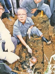 1997年,楊日松在刑事案現場。(圖片來源于:臺灣《中國時報》)