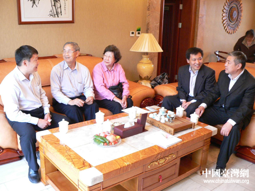 中國臺灣網4月23日臨沂消息 4月22日,臺灣昆山科技大學董事長李士崇先生攜家眷一行8人回山東省沂南縣銅井鎮馬泉莊村探親。臨沂統戰部副部長、臺辦主任解紅日,沂南縣副縣長張云超,沂南縣政協副主席苗德文等領導熱情接待。