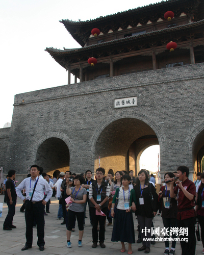 中國臺灣網(wǎng)5月17日棗莊消息 5月16日,科學(xué)發(fā)展新山東——“魯花杯”第八屆中國網(wǎng)絡(luò)媒體山東行西線采訪團(tuán)來到棗莊市臺兒莊古城參觀、采訪。臺兒莊作為全國首個海峽兩岸交流基地,古城內(nèi)隨處可見與臺灣息息相關(guān)的景致與展品。