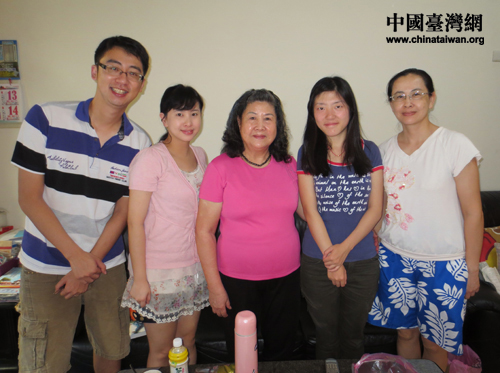 中國地質大學學生吳桐在臺中與中興大學學生陳秋樺的姐姐、外婆等在一起(中國臺灣網 發)