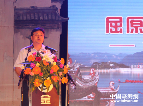 “屈原秭歸 三峽大壩”旅游產品形象發布會在秭歸縣舉辦,秭歸縣縣長盧輝在會上致辭。(中國臺灣網 李杰 攝)