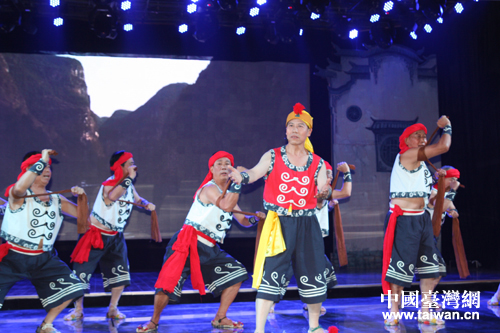 秭歸縣屈原藝術團表演的大型歌舞劇《峽江風情:青灘姐兒曳灘妹兒》。(中國臺灣網 李杰 攝)