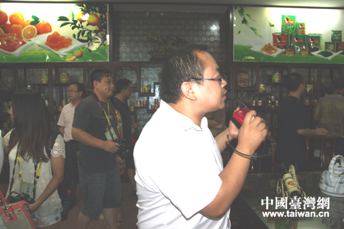 記者團參觀湖北省農業產業化重點龍頭企業——以臍橙加工為主要特色的秭歸屈姑食品有限公司。(中國臺灣網 李杰 攝)