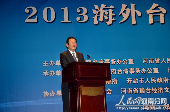 9月12日上午,“2013海外臺(tái)商中原行”活動(dòng)開(kāi)幕式在鄭州舉行。世界臺(tái)商總會(huì)總會(huì)長(zhǎng)李芳信、wintelLTDA董事長(zhǎng)葉慶和、僑商鞋業(yè)總經(jīng)理賴(lài)建中、東隆進(jìn)出口貿(mào)易公司董事長(zhǎng)張志康等海外知名臺(tái)商,河南省房地產(chǎn)業(yè)商會(huì)副會(huì)長(zhǎng)兼秘書(shū)長(zhǎng)趙進(jìn)京,鄭州臺(tái)資企業(yè)協(xié)會(huì)會(huì)長(zhǎng)、丹尼斯百貨有限公司董事長(zhǎng)王尚卿,鄭州臺(tái)資企業(yè)協(xié)會(huì)副會(huì)長(zhǎng)、晶誠(chéng)科技有限公司董事長(zhǎng)陳澤亞等省內(nèi)企業(yè)家和在豫臺(tái)商近200人參加了開(kāi)幕式。開(kāi)幕式由省政府副秘書(shū)長(zhǎng)劉世偉主持,副省長(zhǎng)趙建才出席開(kāi)幕式并致歡迎辭,國(guó)臺(tái)辦主任助理龍明彪在開(kāi)幕式上致辭。