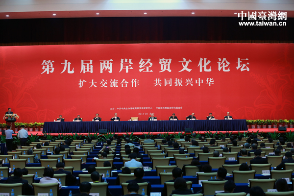 10月27日下午,中共中央臺辦主任張志軍主持第九屆兩岸經貿文化論壇閉幕式,并對論壇進行小結。(中國臺灣網 于斯文 攝)