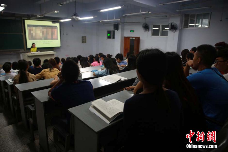 9月22日晚,四川文理學院新學期的一門選修課——性健康教育課開講,當晚原本可坐50人的教室爆棚,約有10名學生還站在教室門前蹭課聽講。據該校工作人員介紹,該課在網上設置選修,學生需要操作電腦選擇,因為“熱門”,課程放出來后僅3秒鐘就被該校學生搶完。鐘欣 攝