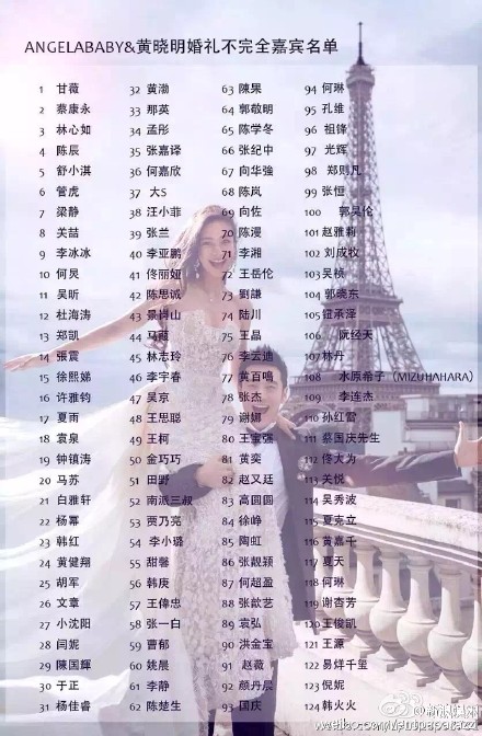 8日上午,黃曉明Baby舉行中式婚禮儀式,叩首、奉茶、拜天地,中式的婚禮禮儀總帶著濃濃的人情味。今晚17:30分,黃曉明和Angelababy將在上海展覽中心舉辦“世紀婚禮”。王思聰、小沈陽 、黃渤 、李云迪 、臺灣富少林昕陽等組成“伴郎團”;倪妮 、賭王女兒何超盈等擔任伴娘;王詩齡當花童。嘉賓很多,明星多達百人。