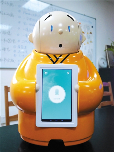 最近,一個(gè)呆萌的機(jī)器人在網(wǎng)上火了。和普通機(jī)器人一樣,它身高近60厘米,能跟人語(yǔ)音對(duì)話,能明白簡(jiǎn)單的指令;但不同的是,它身穿黃色僧袍,會(huì)說佛經(jīng)佛法,還動(dòng)不動(dòng)就說“我去問問我?guī)煾浮薄K褪且粋(gè)叫賢二的機(jī)器僧。昨日,新京報(bào)記者前往龍泉寺——賢二機(jī)器僧的家進(jìn)行了探訪。