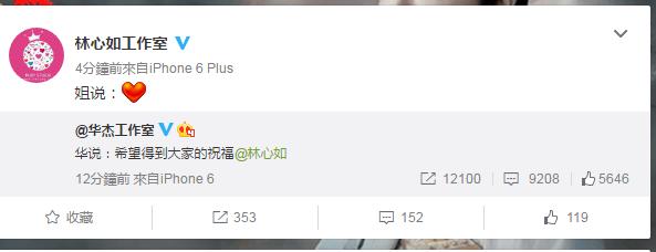 中新網(wǎng)5月20日電 今日,霍建華工作室官方微博發(fā)布一條消息,稱“華說:希望得到大家的祝福。”并艾特了林心如。隨后,林心如工作室官方微博轉發(fā)微博,發(fā)表紅心默認。