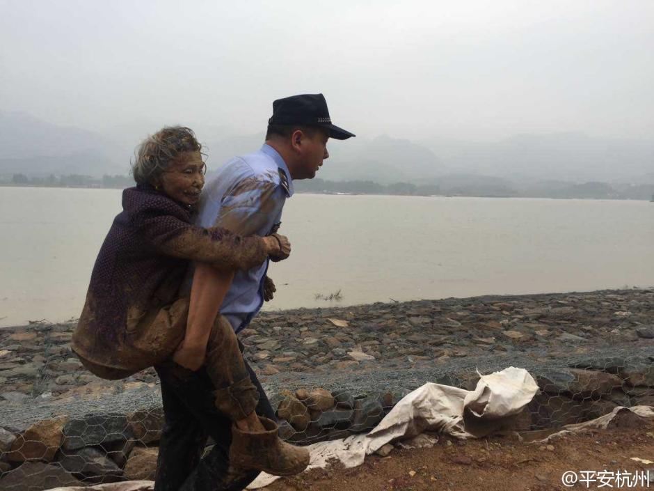 6月1日,杭州民警接到報警稱,85歲患有老年癡呆的何奶奶獨自走失。民警通過查監控、聯系救助隊,尋人12小時后,終于在2日早上找到了摔倒在江堤泥潭中的何奶奶,將老人背出泥潭,安全送回家。圖片來源:杭州市公安局官方微博