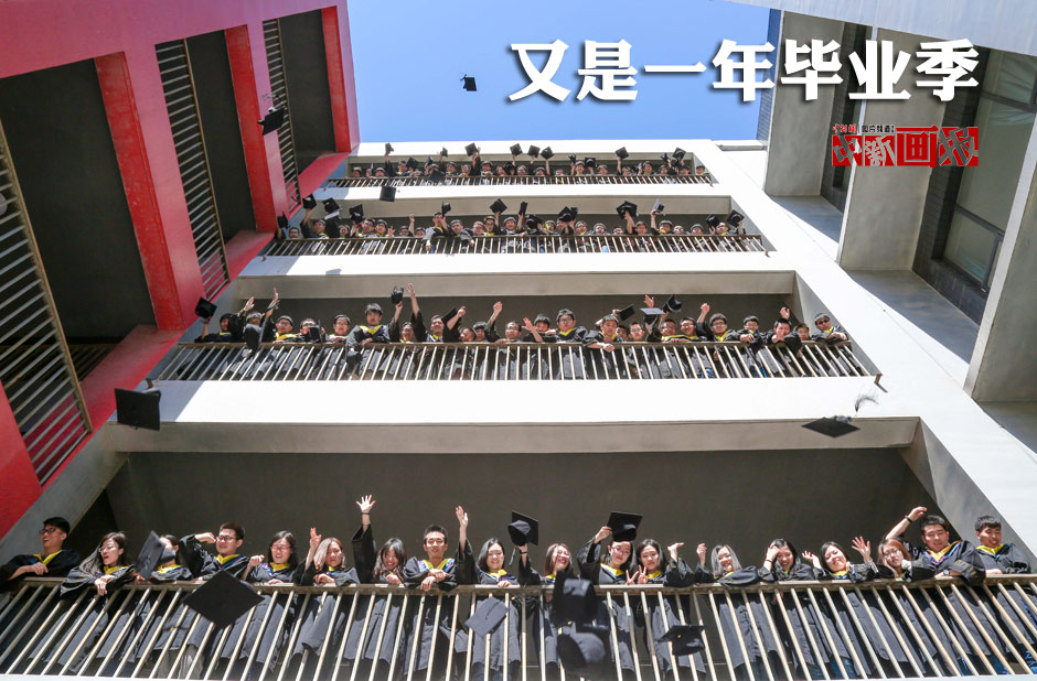 近期,河北高校畢業生開始迎來畢業季。大學畢業逐漸成為了青春的分界線,畢業生們在告別校園的同時也在向青春揮別,河北多所高校畢業生“腦洞大開”拍攝各式畢業照,以此來紀念即將逝去的大學時光,向青春致敬。圖為邯鄲學院穿學士服拍攝創意畢業照。甄佳賀 攝