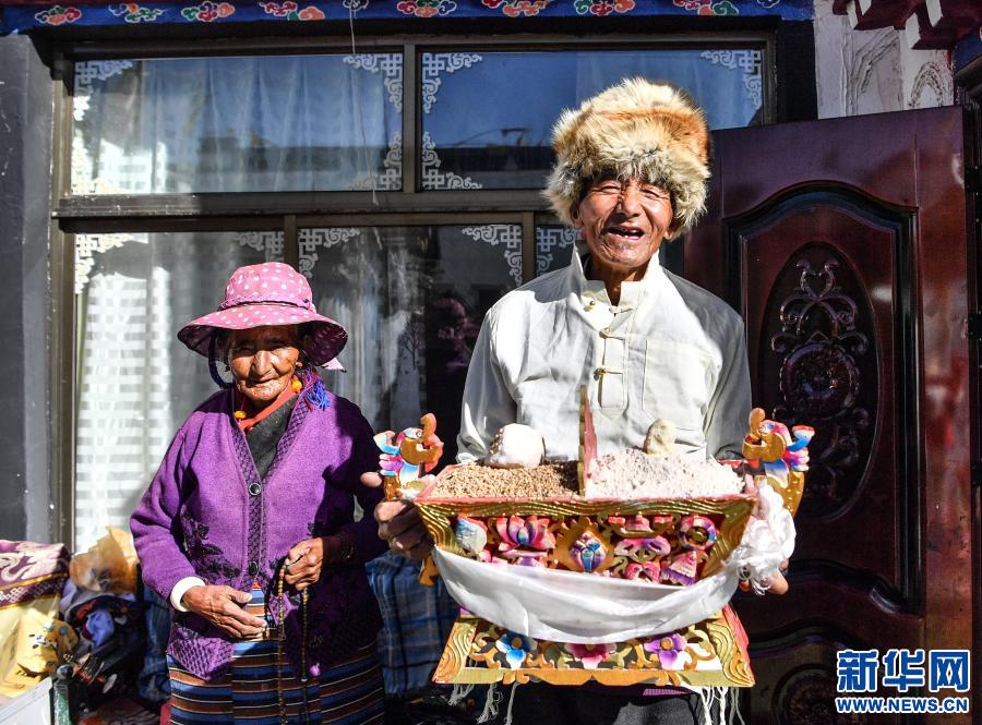 當日,西藏日喀則迎來農家新年。在位于薩迦縣扯休鄉,毗鄰318國道的嘎吉林村安置點,村民們歡度搬遷新居后的第一個新年。