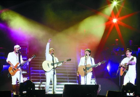 開場后的十五分鐘,是縱貫線獻(xiàn)給泉州觀眾的一套漂亮的“組合拳”,演唱起《鹿港小鎮(zhèn)》、《我終于失去了你》、《愛相隨》等經(jīng)典歌曲,在奇幻的燈光和夢幻的舞臺中,四位“金牌老男人”玩轉(zhuǎn)吉他、箱琴、鍵盤和架子鼓,用組合的形式將四人各自的經(jīng)典作品來了個(gè)超級串燒,以合唱、配唱、小組唱等各種方式,吊足了現(xiàn)場觀眾的胃口,也帶給大家足夠的驚喜。