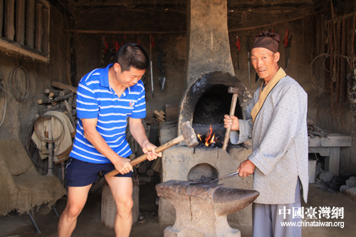 我做事就是這么認真—東南衛視海峽新干線吳明東模仿打鐵(中國臺灣網 楊永青 攝)
