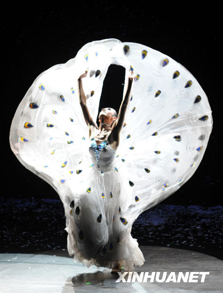 當晚,由大陸著名舞蹈家楊麗萍領銜主演的大型原生態歌舞集《云南映象》在臺北“小巨蛋”體育館上演。《云南映象》全體演職人員還籌集了15萬元人民幣為臺灣同胞賑災。新華社發(吳景騰 攝)
