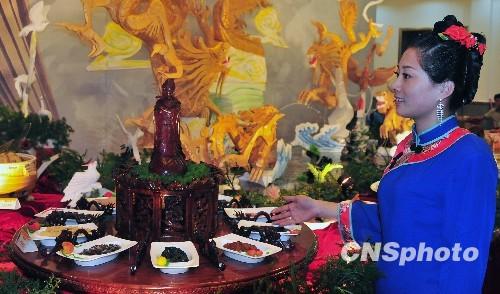 11月2日晚,“媽祖宴”獻禮“兩岸千人頌媽祖”活動信眾,其精致程度讓海內外信眾嘆為觀止。宴菜結合媽祖傳說、典故、封號和祥瑞之語等進行命名,以期感悟文化中得平安。“媽祖宴”在今年10月獲得第四屆搜廚國際烹飪大賽團體金獎。圖為“媽祖宴”最新菜式“恩澤寰宇”。 中新社發 張麗君 攝