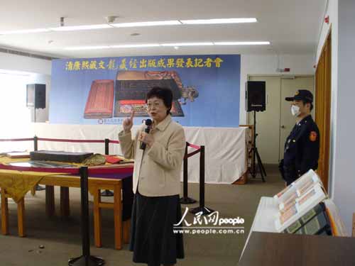 今天的記者會(huì)上,臺(tái)北故宮副院長(zhǎng)馮明珠表示,此書(shū)的出版,除了提供信眾請(qǐng)購(gòu)供奉莊嚴(yán)佛堂外,對(duì)于藏學(xué)、佛學(xué)、清初的宮廷繪畫(huà)和清代書(shū)籍制作工藝等方面的研究,將起到積極作用。