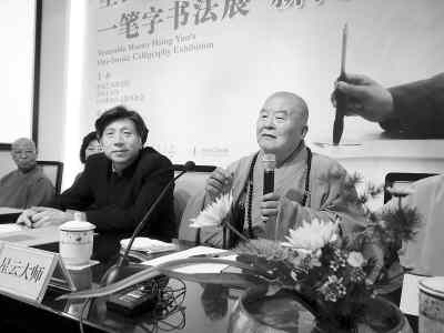 圖為星云大師(右)出席中國美術(shù)館舉行的書法展新聞發(fā)布會。趙永琦攝