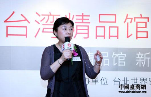 臺北世界貿易中心營銷項目處處長、“臺灣精品館”館長李惠玲在新聞發布會上致辭。(中國臺灣網 鐘寶華 攝)