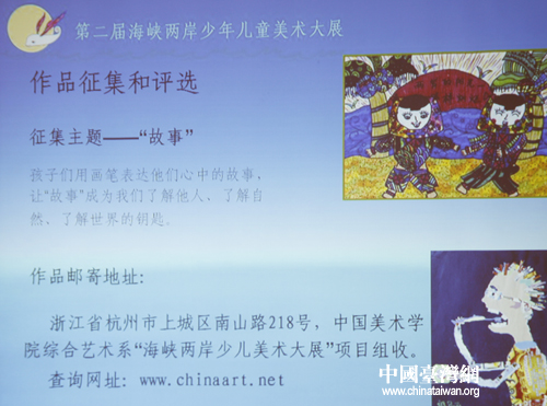 “第二屆海峽兩岸少兒美術大展”是國臺辦2010年重點對臺交流項目,由中國美術家協會少兒美術藝委會、文化部中國藝術研究推廣中心、福建省閩臺交流協會主辦;北京今日美術館、臺灣蘇荷兒童美術館、云揚天際文化藝術機構共同推動。作為此次大展的支持單位,國臺辦將對活動給予全程指導。此前,曾于2009年7月在廈門成功舉辦了首屆大展。(中國臺灣網記者 孫金誠)