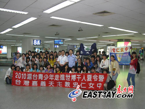圖片說明:臺灣嘉義宏仁女中50余名師生在虹橋機場合影留念