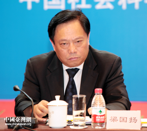 梁國(guó)揚(yáng)是25日下午,在由臺(tái)盟中央、全國(guó)臺(tái)聯(lián)、中國(guó)社科院和海研中心共同舉辦的紀(jì)念臺(tái)灣光復(fù)65周年研討會(huì)上致辭時(shí),做以上表述的。