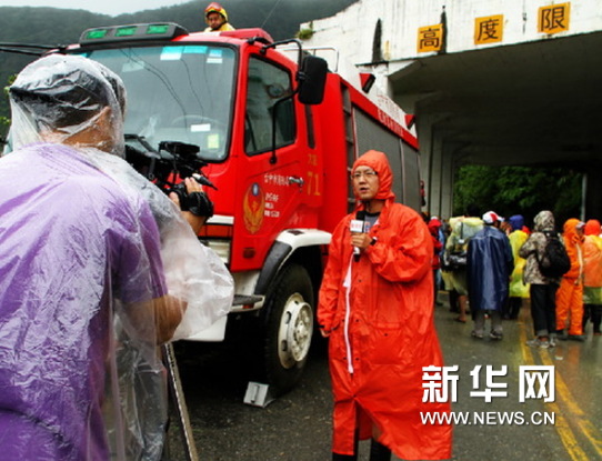 記者在蘇花公路報道(新華社記者任沁沁攝)