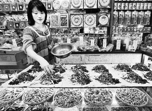 臺(tái)灣90%的中藥從大陸購(gòu)買,圖為臺(tái)北迪化街中藥商正在抓中藥