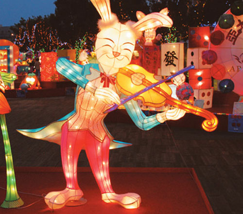 此次在元宵節(jié)開(kāi)幕的“2011臺(tái)灣燈會(huì)”,邀請(qǐng)著名導(dǎo)演賴聲川作為總策劃,設(shè)有客家創(chuàng)意主題館、水光秀燈區(qū)、水果燈區(qū)、科技燈區(qū)、百兔燈區(qū)、競(jìng)賽燈區(qū)、燈海迷宮等15個(gè)燈區(qū),為臺(tái)灣自1990年舉辦一年一度的燈會(huì)以來(lái)規(guī)模最大的一次。苗栗縣65%為客家人,據(jù)燈會(huì)組織者介紹,此次燈會(huì)將重點(diǎn)呈現(xiàn)苗栗當(dāng)?shù)氐亩嘣L(fēng)采,將當(dāng)?shù)氐挠^光、文化及產(chǎn)業(yè)推向世界。預(yù)計(jì)為時(shí)12天的燈會(huì)期間,前來(lái)觀燈的游客將達(dá)500萬(wàn)人次。(記者 孔曉寧 文/圖)
