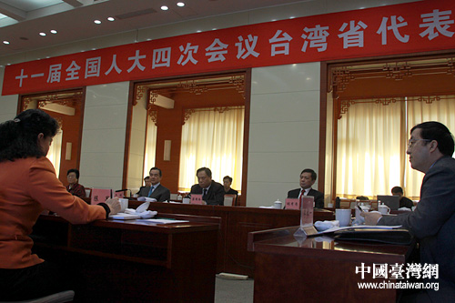 中共中央臺辦、國務院臺辦主任王毅參加十一屆全國人大四次會議臺灣代表團小組討論會。(中國臺灣網 董潔 攝)