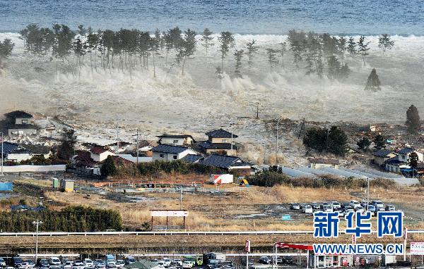 2011年3月11日,在日本名取市,強(qiáng)烈地震引發(fā)的海嘯襲擊一處居民區(qū)。3月11日當(dāng)?shù)貢r(shí)間14時(shí)46分(北京時(shí)間13時(shí)46分),日本發(fā)生里氏8.8級(jí)地震并在日本東北太平洋沿岸引發(fā)巨大海嘯,造成重大人員傷亡。高達(dá)數(shù)米的海浪將車輛等卷入海中,并沖毀沿岸建筑。新華社發(fā)