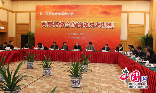 第三屆兩岸青年學者論壇3月23日在京舉行,論壇主題為“兩岸持續合作的動力與機制”。主辦方全國臺灣研究會邀請了來自清華大學、廈門大學以及臺北大學等兩岸高校等相關研究機構的三十余位青年學者,就影響兩岸持續合作的內外因素、動力、機制、趨勢等議題進行了廣泛研討。全國臺灣研究會執行副會長兼秘書長周志懷出席論壇并致開幕辭。(記者 許玉燕)