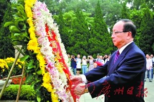 昨日,在廣州市政協主席林元和的陪同下,中國國民黨副主席蔣孝嚴到廣州黃花崗七十二烈士墓拜祭,并應邀題字“浩氣長存”。蔣孝嚴表示,在辛亥革命100周年之際,來拜祭黃花崗七十二烈士墓是非常值得紀念的事情,影響深遠。