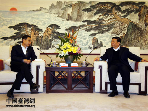 中共山東省委副書記、山東省省長(zhǎng)姜大明會(huì)見海峽交流基金會(huì)副董事長(zhǎng)兼秘書長(zhǎng)高孔廉(圖片來(lái)源:山東省臺(tái)辦)