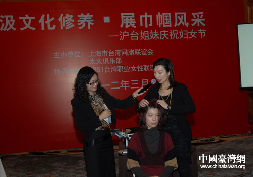 中共中央候補委員、上海市臺聯(lián)會長林明月,上海海外聯(lián)誼會副會長丁志堅,上海市婦聯(lián)副主席黎榮和太太俱樂部會長李月娥出席并致詞。上海文史館館員、知名臺胞油畫家廖炯模教授為姐妹們介紹了美學(xué)的基礎(chǔ)理論和審美的豐富內(nèi)涵,來自臺灣的造型師吳慧芬講解了2012春夏造型潮流。