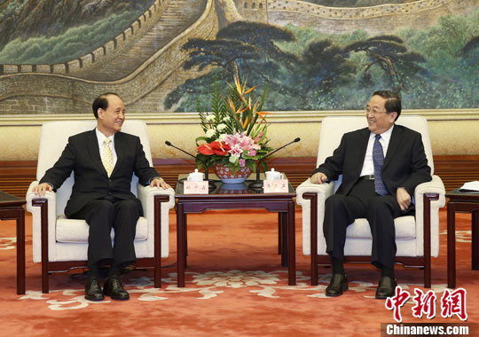 中新社北京9月12日電 (記者 路梅)中共中央政治局常委、全國(guó)政協(xié)主席俞正聲12日上午在人民大會(huì)堂會(huì)見了臺(tái)灣;鶗(huì)董事長(zhǎng)林中森率領(lǐng)的董監(jiān)事參訪團(tuán)一行。